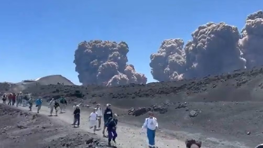 #INTERNACIONAL | El Monte Etna, el volcán activo más alto de Europa, volvió a hacer erupción este lunes 2 de junio de 2025, generando escenas de pánico entre decenas de turistas que se encontraban en sus laderas al momento de la actividad volcánica. Los visitantes tuvieron que huir apresuradamente mientras el cráter expulsaba una columna densa de humo, lava y material piroclástico.
