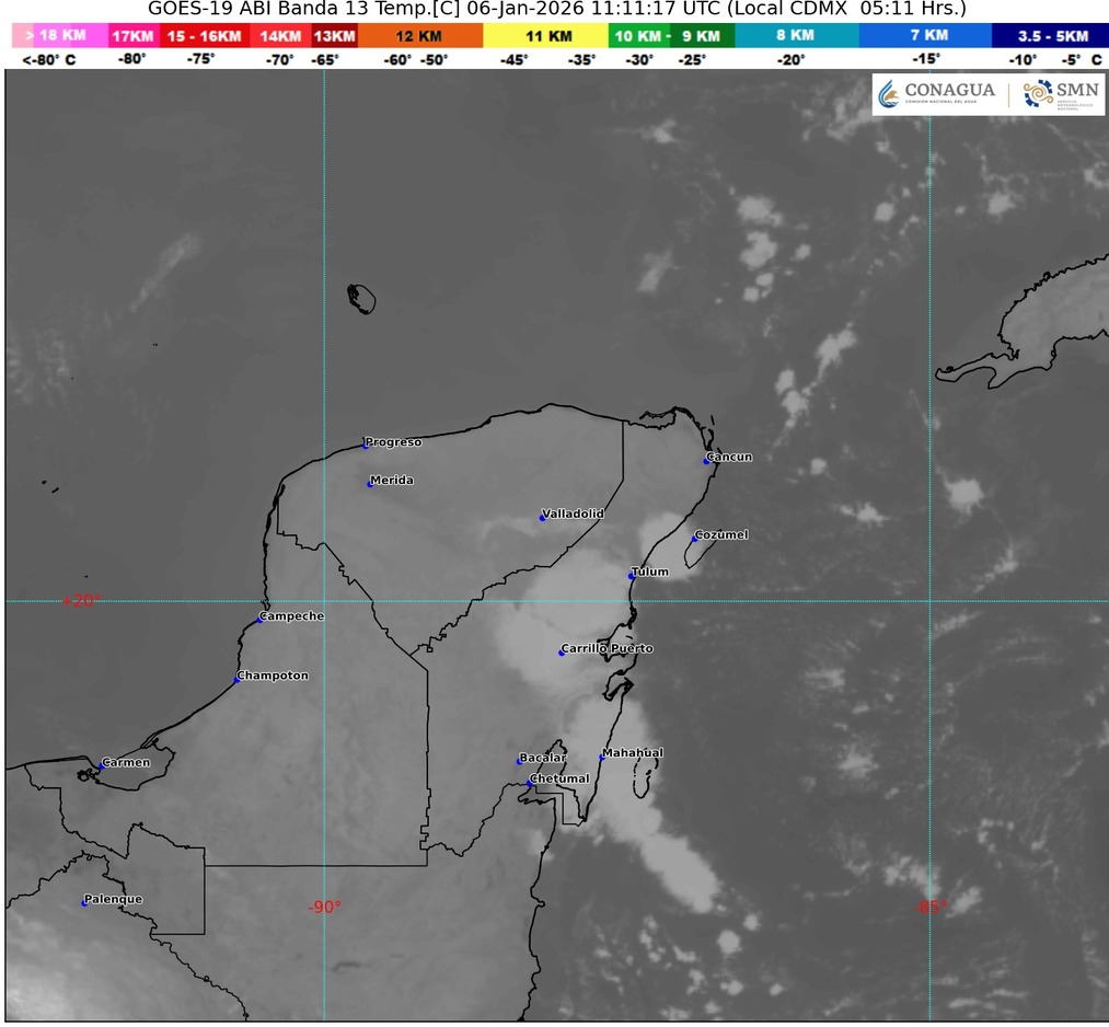 A su vez, canales de baja presión y el ingreso de humedad del océano Pacífico, golfo de México y mar Caribe, ocasionarán lluvias y chubascos con posibles descargas eléctricas en el sureste mexicano, incluida la península de Yucatán.